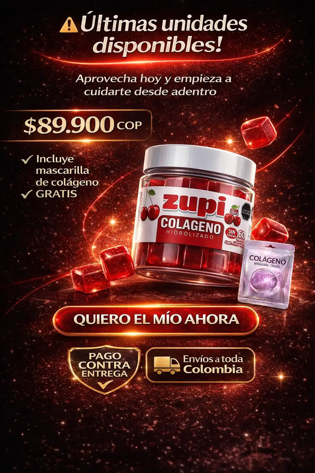 ✨ Gomas de colágeno + mascarilla coreana GRATIS 🎁💖 Piel firme, hidratada y sin arrugas desde adentro🔥 Promo limitada: lleva tu combo de belleza hoy🚚 Envío GRATIS a todo Colombia 🇨🇴🌸 Rejuvenece tu piel de forma natural y deliciosa💫 Resultados visibles en pocas semanas🛍️ Compra ahora y recibe regalo exclusivo